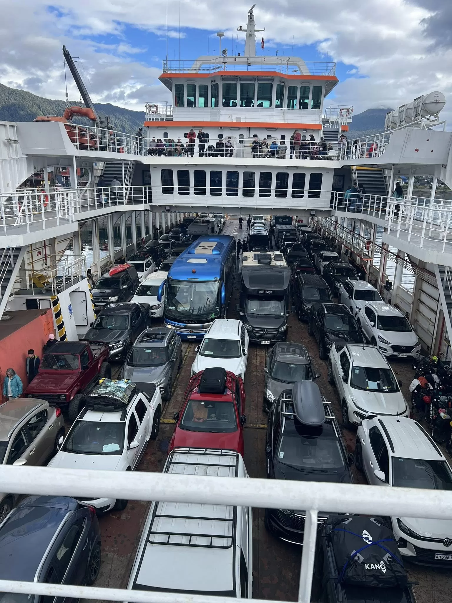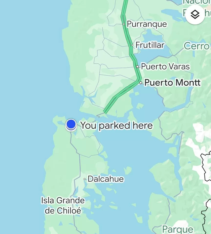 The journey continued with more ferries and scenic drives through fjords and forested hills. After leaving Chiloé, they made their way toward Hornopirén, where another ferry awaited them early the next morning.