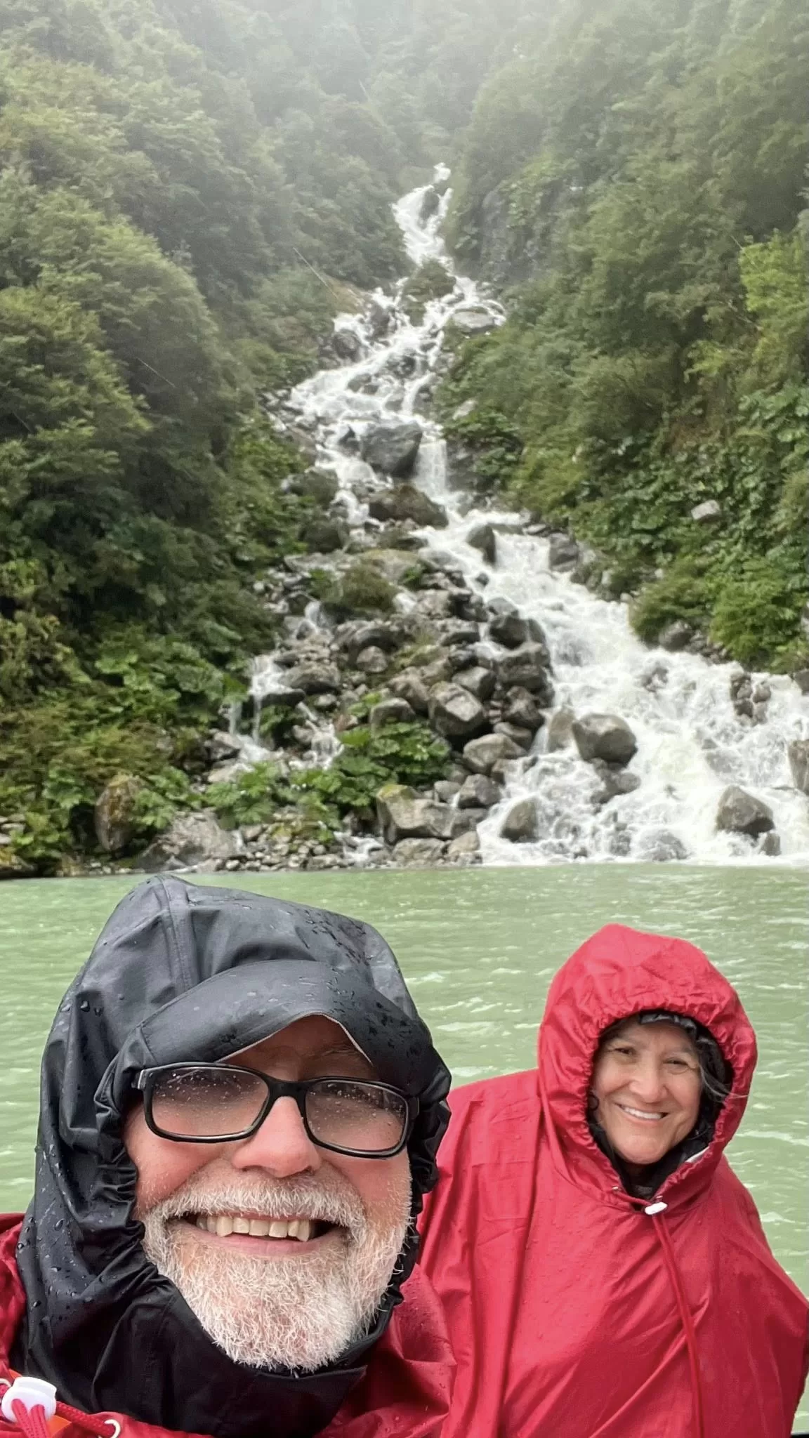 Queulat National Park is home to a stunning hanging glacier, and for David and Isabel, it was the first glacier they had ever seen. Despite lingering rain, they decided to take a small rubber boat across the lake to get closer.